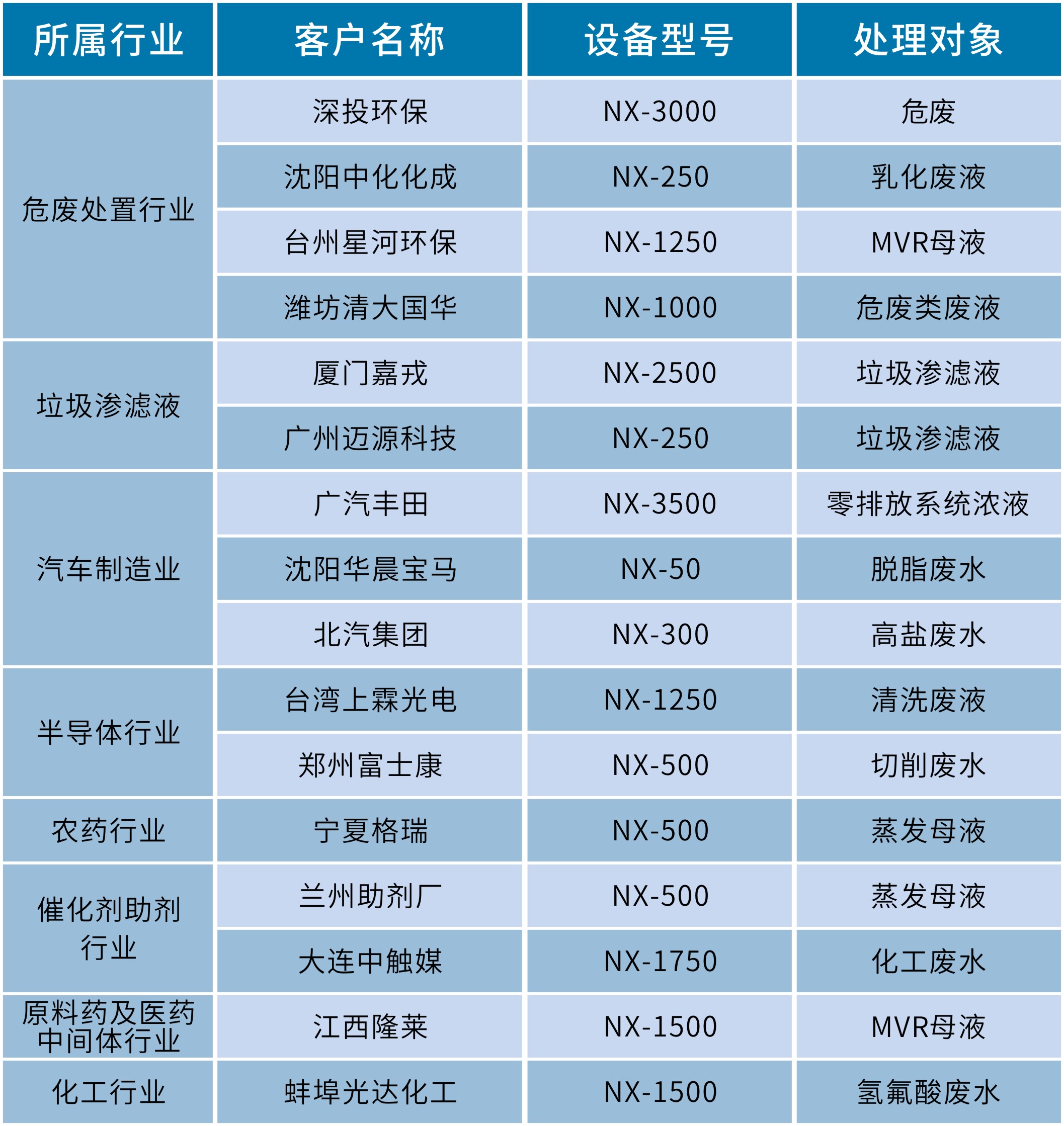 針對不同種類的高鹽、高COD濃縮母液以及不同客戶的需求,公司提供材質差異化設備,主體材質有SUS304、SUS316L、雙相鋼以及鈦材等。